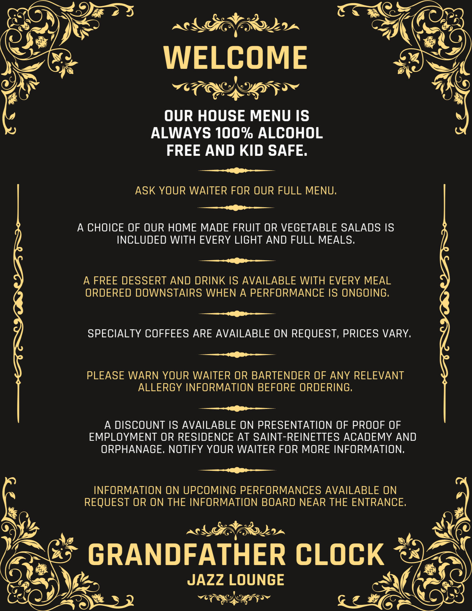 The Grandfather Clock is a sub-venue and apart of Saint Reinette's University. All Staff and members of the venue are part of SR-RP, and any events held from this location are held at the discretion of the University. Contact Calder Tumet, Rukoko Ruko, or Sundywrb Farredzawyn for more information.